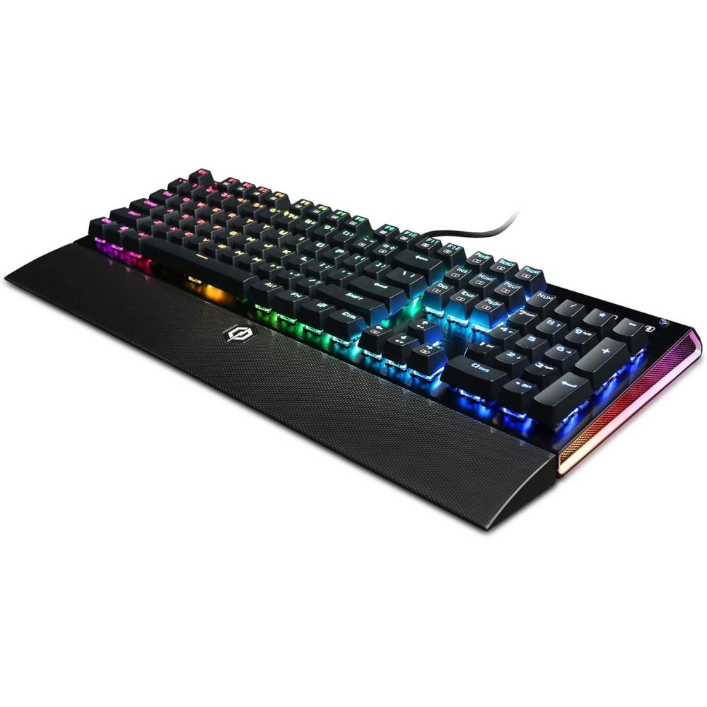 CyberpowerPC Syber SK100 RGB 104 Mechanical Gaming Keyboard (Individually Backlit Keys, Kontact ™ Blue Mechanical Switches, Programmable Macro Keys and Built in Wrist Support), Black